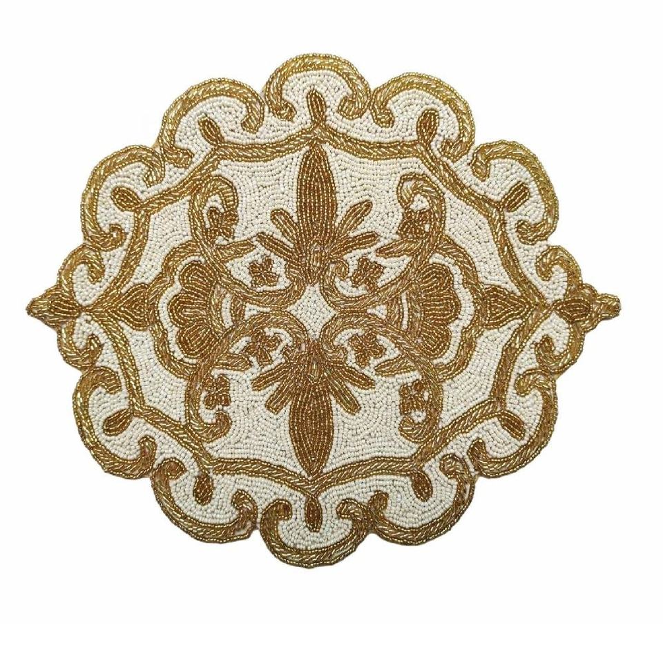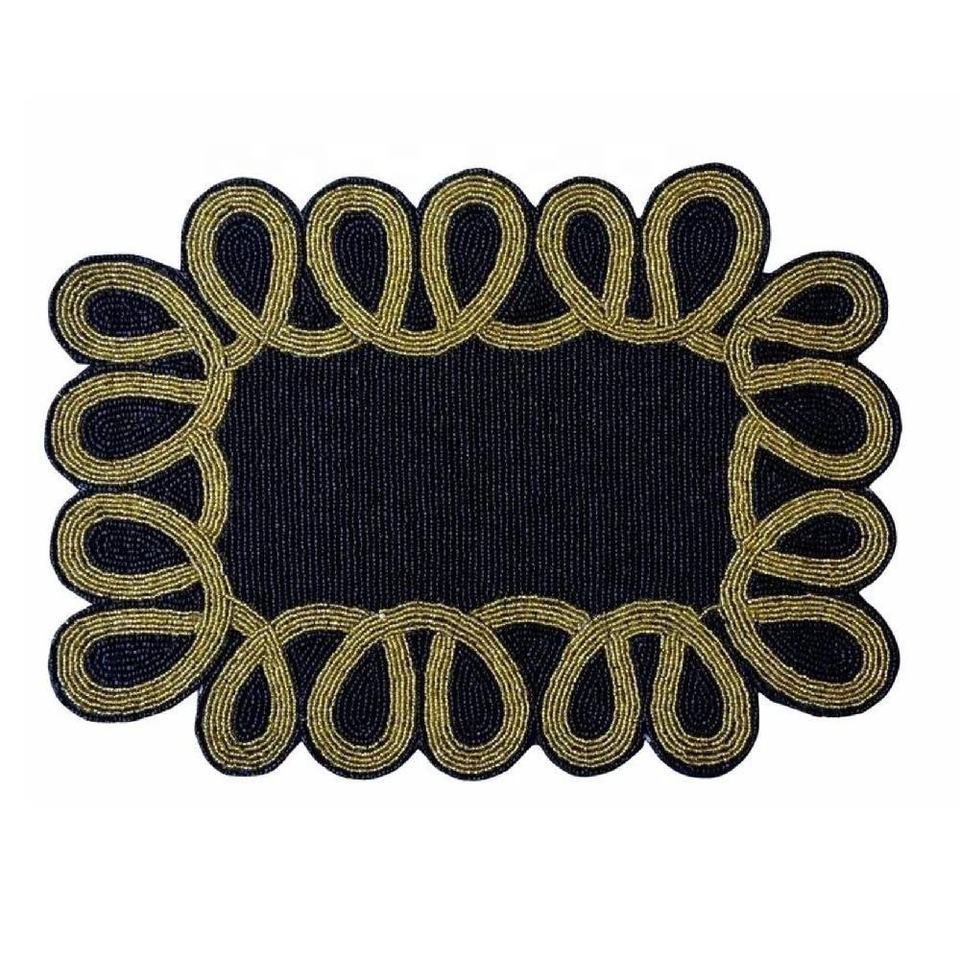 New Arrival Black & Gold Glass Beaded Table Mat Handmade Decorative Beaded Place Mat Glass Beaded Charger for Dinning Table