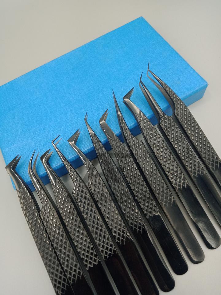 New Arrival High Quality Stainless Steel Eyelash Extension Tweezers Black Plasma Color 90 Degree Volume Boot Hand Tested Lash
