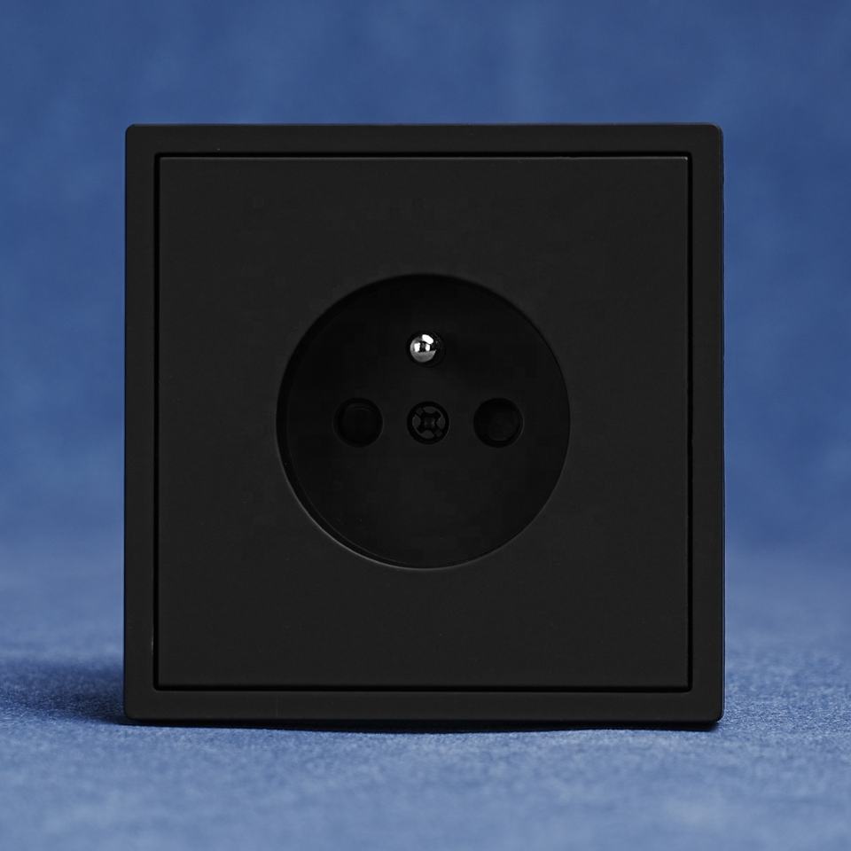 Nouvelle arrivée Black Skin Feel Large Board PC Panel Prise de terre murale française 2P + T pour la maison EU Plugs Sockets
