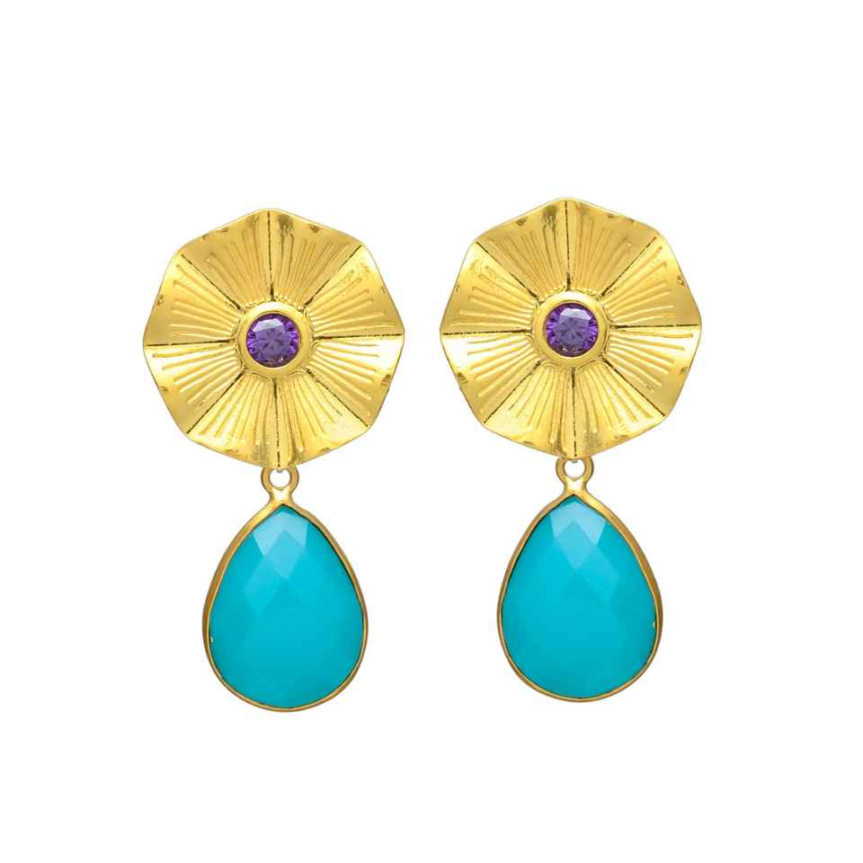 New Arrival Blue Chalcedony Teardrop Earrings With Amethyst Center