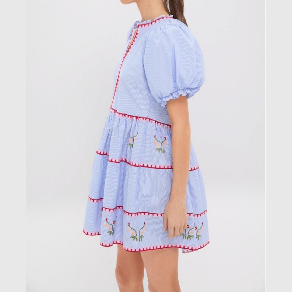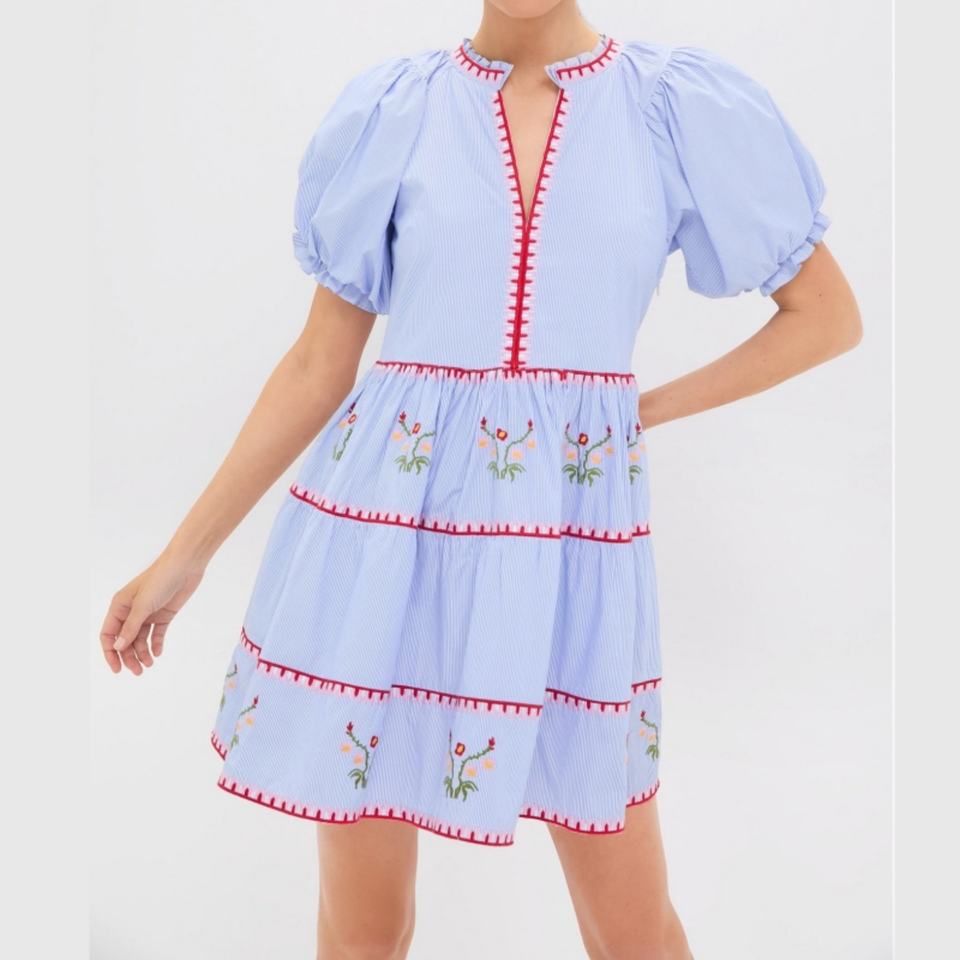 Nouvelle arrivée, robe courte à volants brodée de style bohème, manches bouffantes, robe d'été en coton rayé pour femmes
