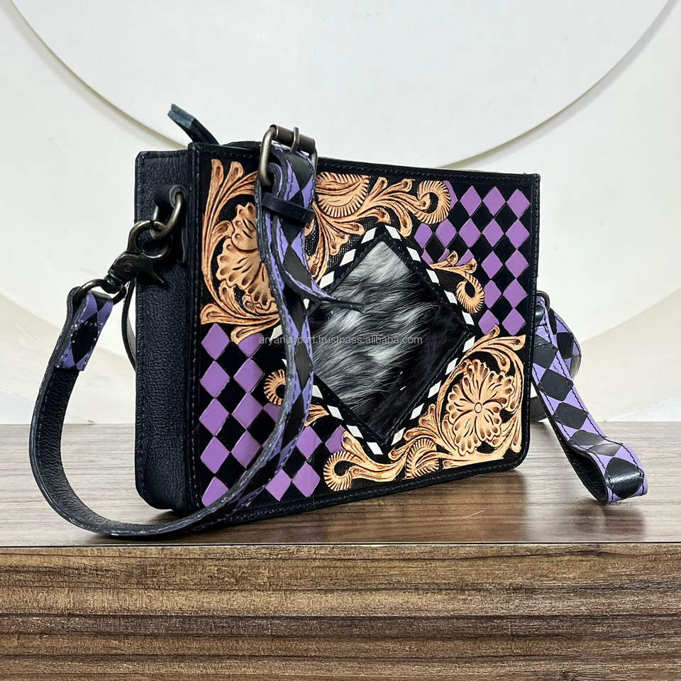 Sacs bandoulière en cuir à carreaux travaillés à la main