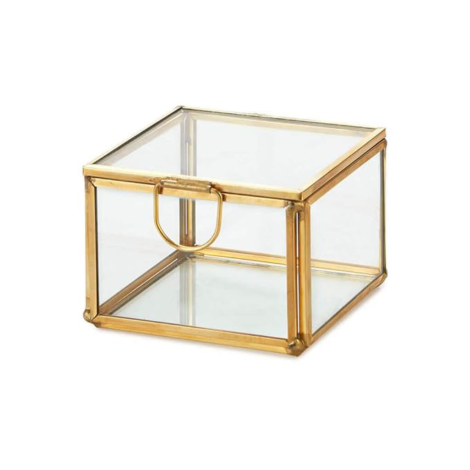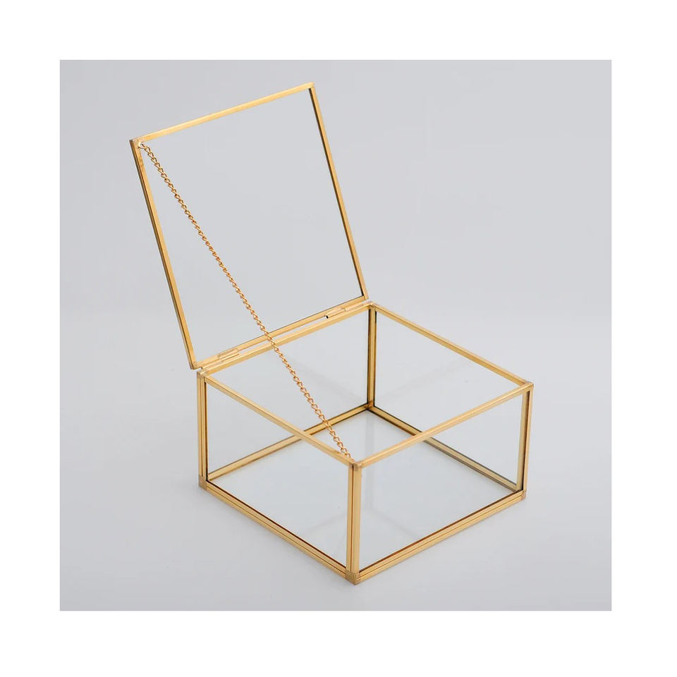 Nouvel arrivage de boîte de rangement de maquillage en verre transparent avec bordure en laiton, qualité supérieure, forme rectangulaire à prix compétitif
