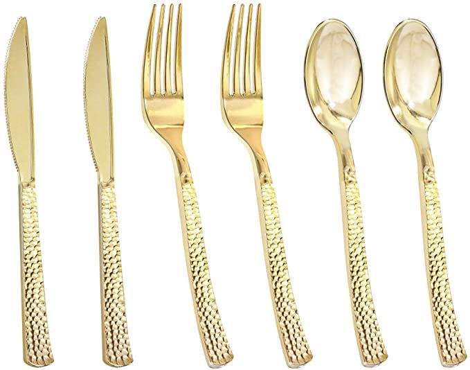 Nouveauté : Ensemble de couverts en laiton de 5 pièces, design martelé, ensemble de couverts modernes en métal laiton, ensemble de couverts dorés élégants, vente en gros