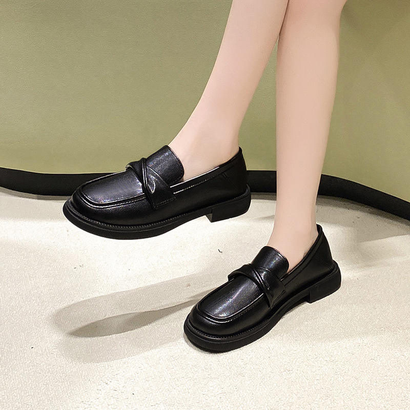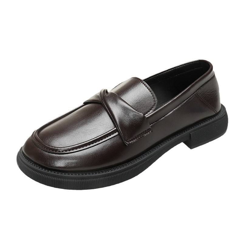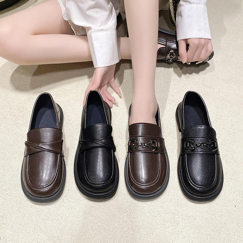 Nouvelle Arrivée Chaussures Plates en Cuir Style Britannique à Chaîne Grande Taille pour Femmes Automne à Enfiler Talon Bas