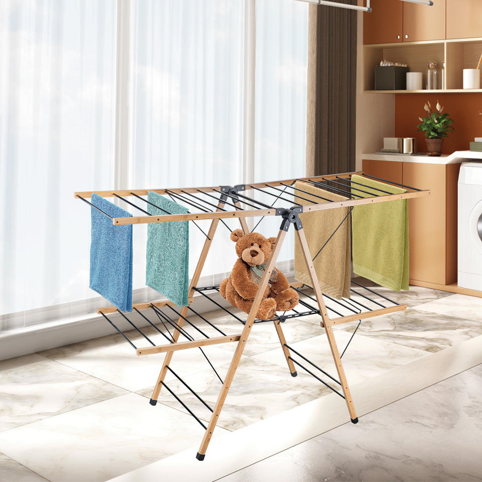 Nom du produit:Séchoir à linge en bambou et fer 26M 2 TIERS