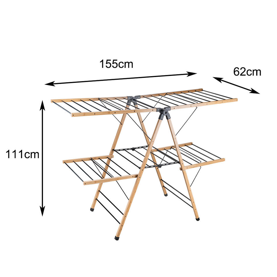Produit:Séchoir à linge 2 niveaux en bambou et fer, 26 m