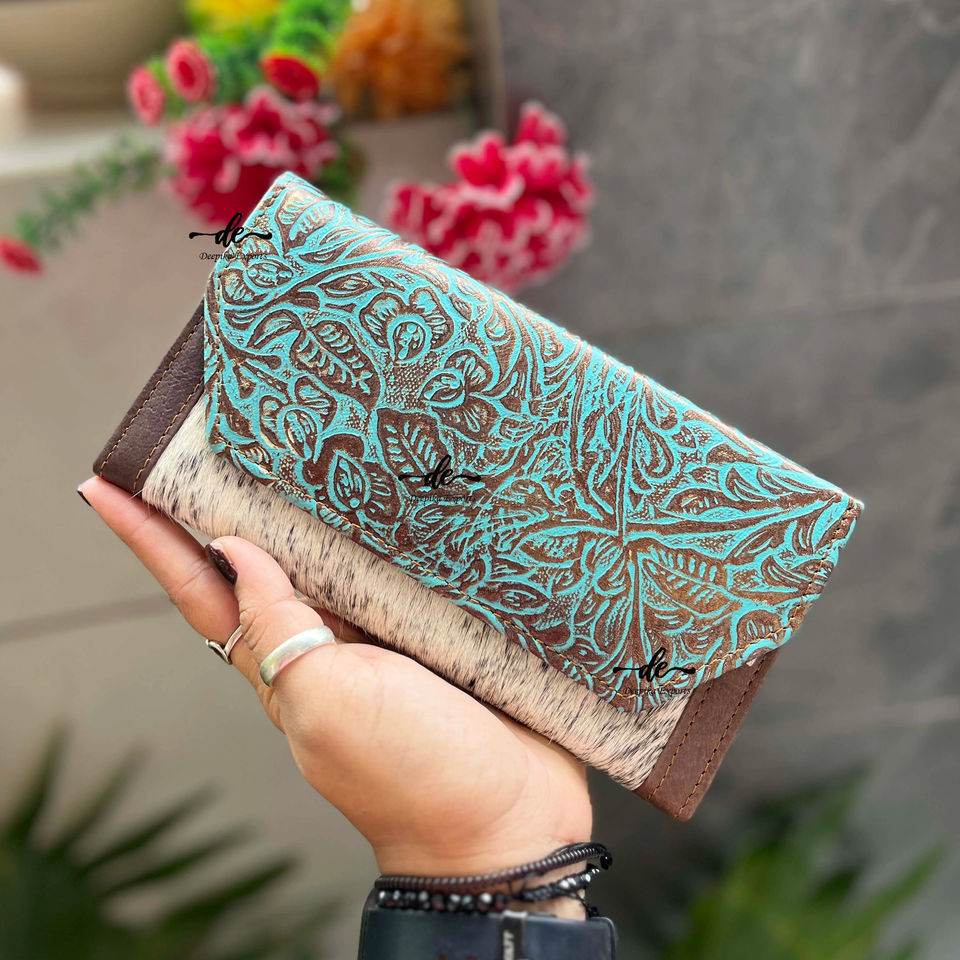 Portefeuille en cuir sculpté pochette étui de téléphone élégant portefeuilles en cuir de vachette portefeuille couleur turquoise pour les femmes nouvel arrivage