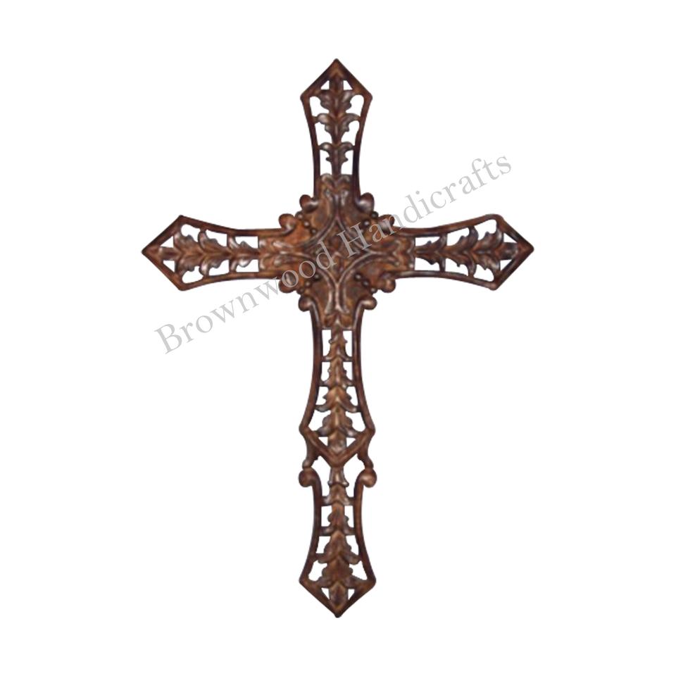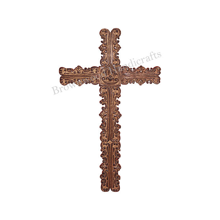 Nouvel arrivage de décoration de Noël sculpture sur bois au design antique, croix religieuse à suspendre à la main pour l'église et la maison