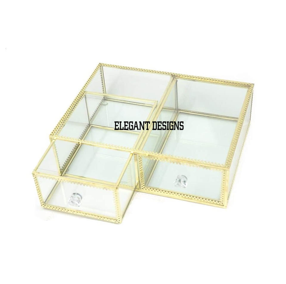 Nouveauté Boîte à bijoux en métal classique fantaisie couleur or faite à la main avec deux tiroirs Offre Spéciale de vente chaude écologique