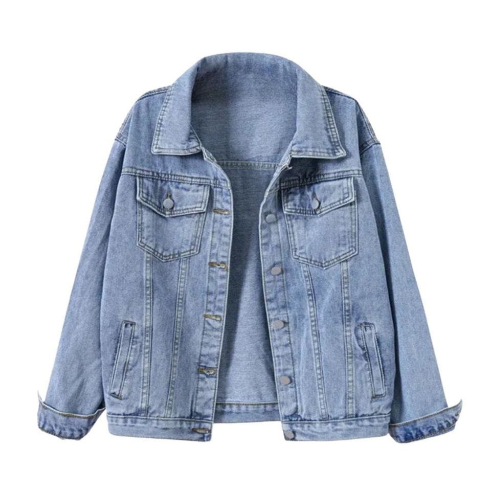 Nouvel arrivage de veste classique en jean bleu clair à coupe ample pour hommes, veste unisexe en jean décontractée en coton pour l'extérieur, style tendance