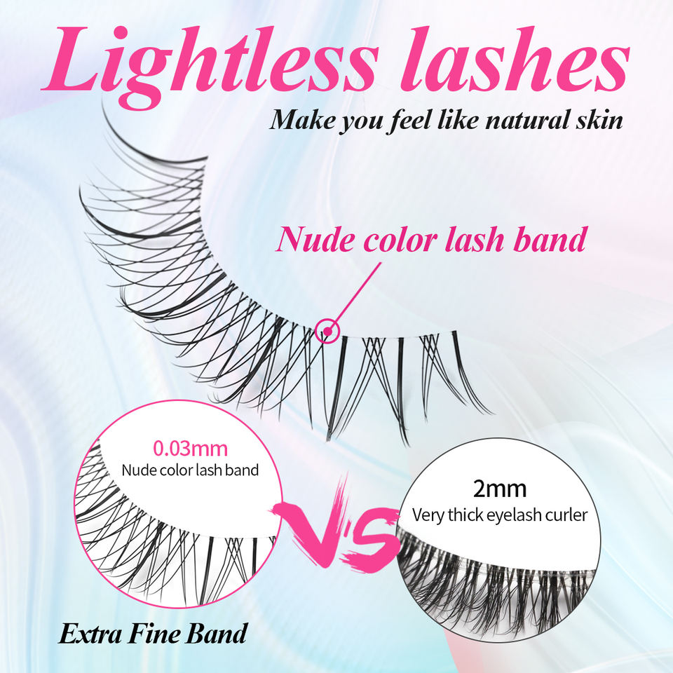 Nouvel arrivage de faux cils transparents à bande fine avec votre propre logo de faux cils super fins