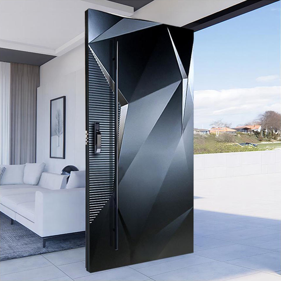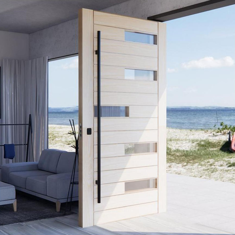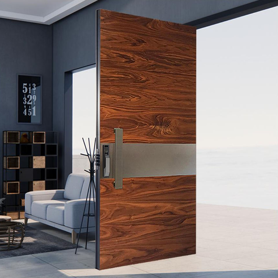 Nouveauté Entrée principale contemporaine en bois massif Portes d'entrée en bois rouge Portes d'entrée pour maisons Porte pivotante principale extérieure moderne