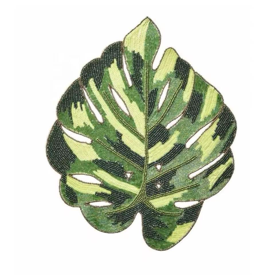 Nouvel arrivage de napperon perlé de verre design corail fait à la main plaque de chargeur de verre perlé tapis de table perlé de verre de dessus de table