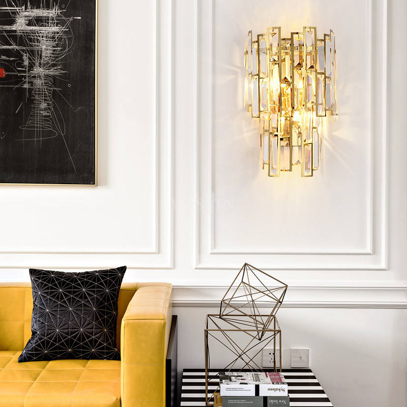 Shade color:Postmodern Crystal Wall Lamp, Gold+clear