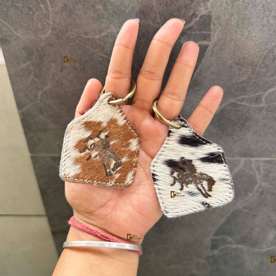 Cowhide Leather Keychain Leopard Cow Print Leather Keyrings Keychains