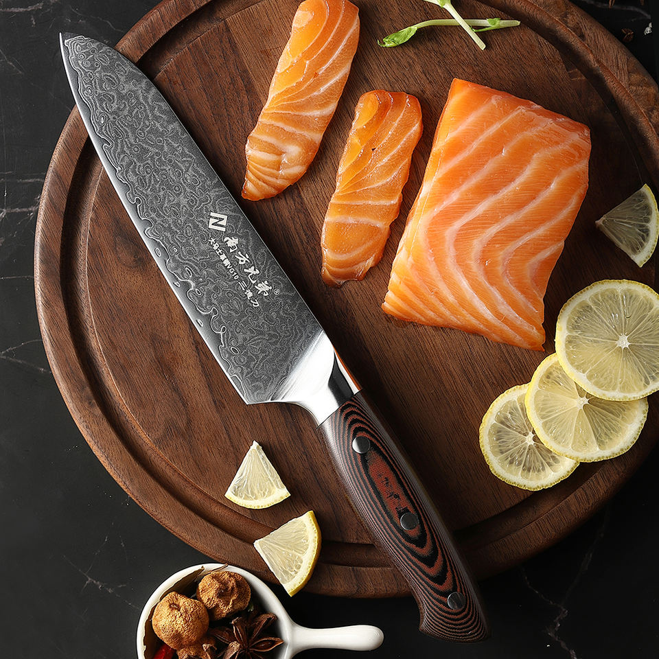 Nouveauté, ustensiles de cuisine damas personnalisés de 8 pouces, couteau Santoku kiwi de cuisine japonaise du chef Dalstrong