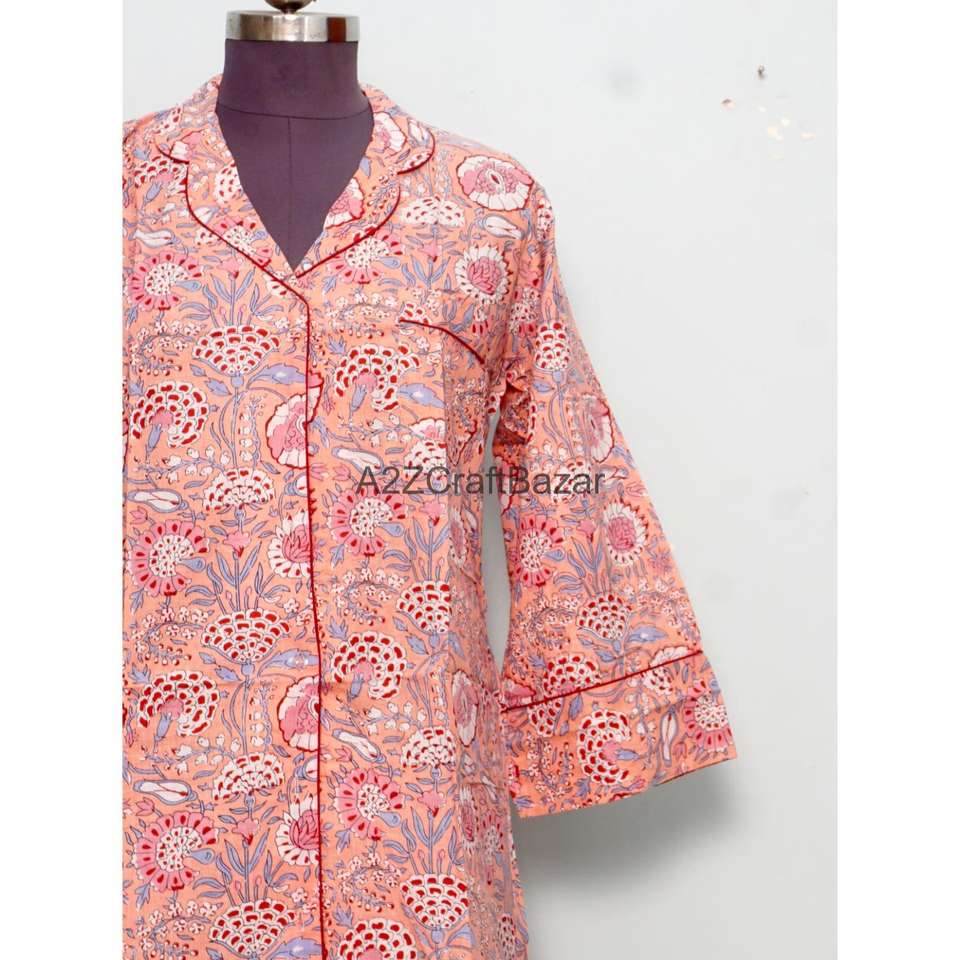 Nouvelle Arrivée Tunique de Nuit Confortable en Coton Respirant 100% avec Impression Numérique Personnalisée et Fermeture Boutonnée Coupe Ajustée