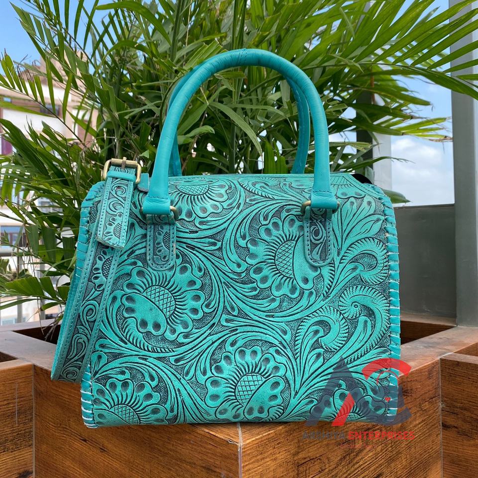 New Arrival Custom Hand Tooled Leather Floral Design Large Capacity Personalized Travel Bags Fashion Zipper Weekend Duffle Bag
