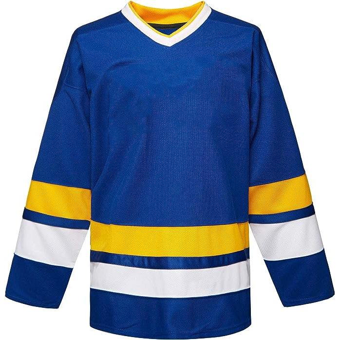 Nouvel arrivage de maillot de hockey sur glace personnalisé de dernière conception maillot de hockey vierge respirant de couleur bleue brodé par sublimation uniforme