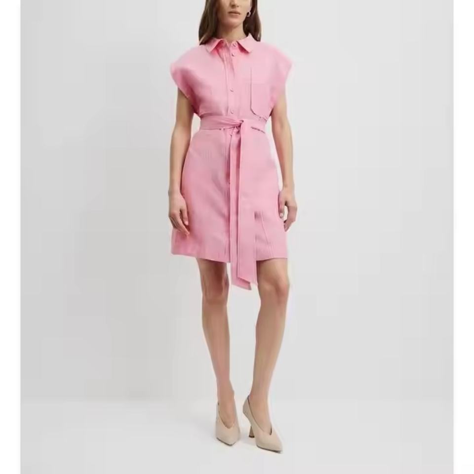 Nouvelle Arrivée Robe Polo Sans Manches en Lin et Coton Naturel Uni avec Logo Personnalisé pour Femme, Idéale pour l'Été et les Affaires