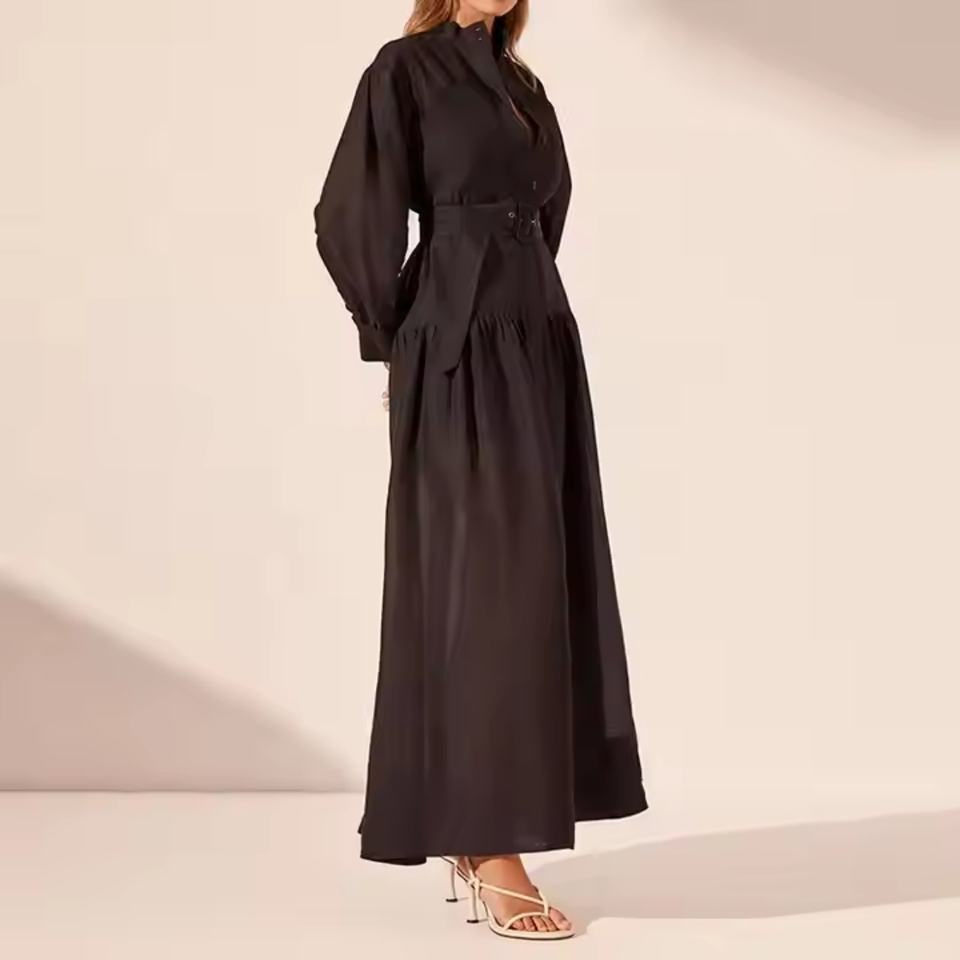 Nouvelle Arrivée Robe d'été personnalisée avec logo, col montant, manches longues, boutonnée, style polo, en lin et coton, pour femme