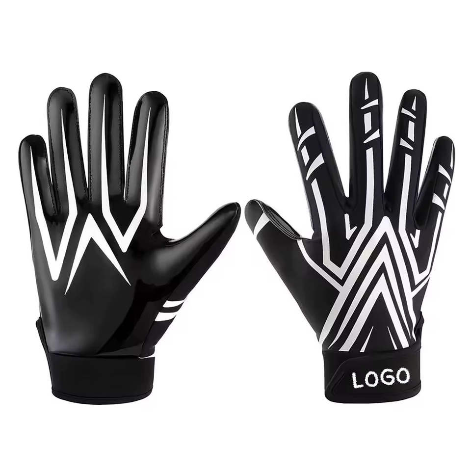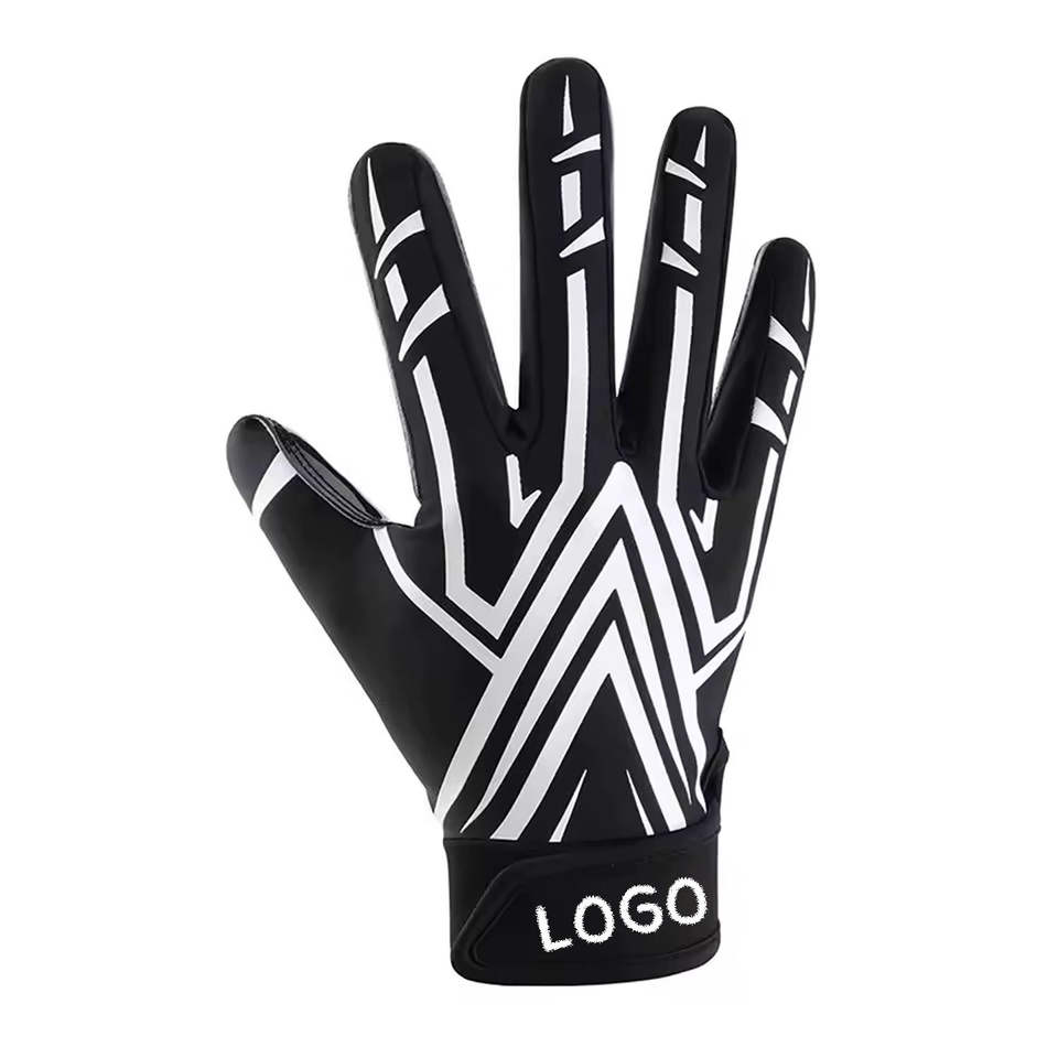 Nouveauté, gants de football américain sur mesure, qualité supérieure, couleur noire unie, respirants, confortables, antidérapants