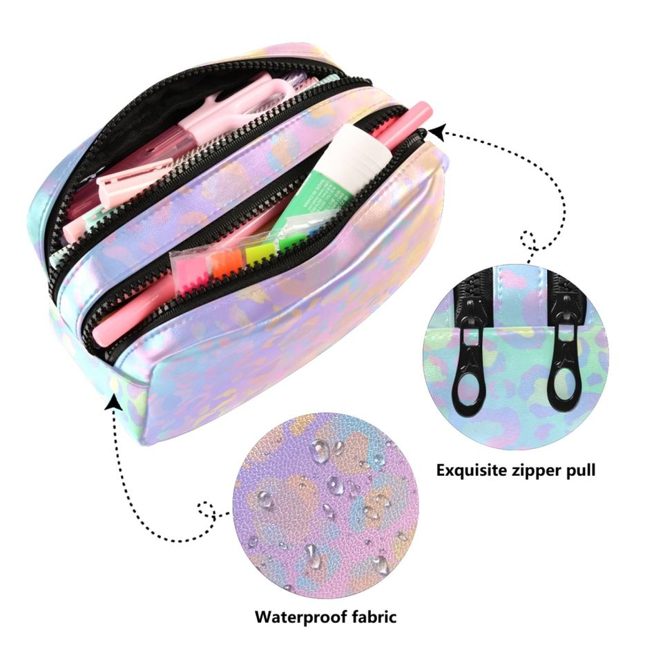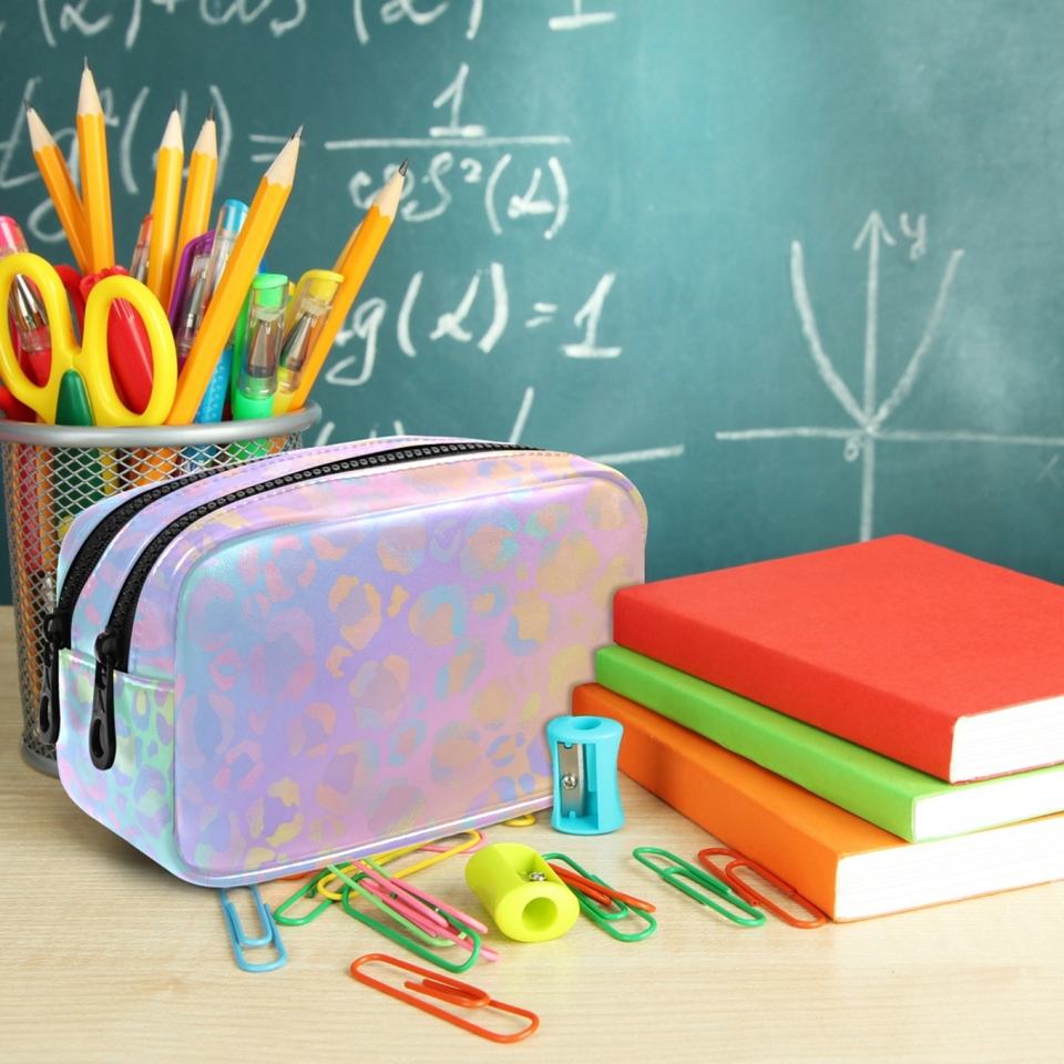 Nouveauté : Trousse à crayons scolaire multifonctionnelle double face portable en polyester avec deux fermetures éclair pour étudiants
