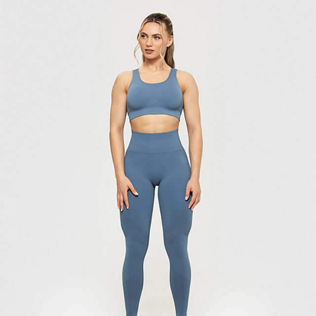 Nouvel Arrivage Ensemble Soutien-Gorge de Sport Femme à Bonnets Triangulaires Personnalisés et Leggings Taille Haute Sans Armature Respirant Dentelle Spandex/Nylon Coupe Ajustée Été