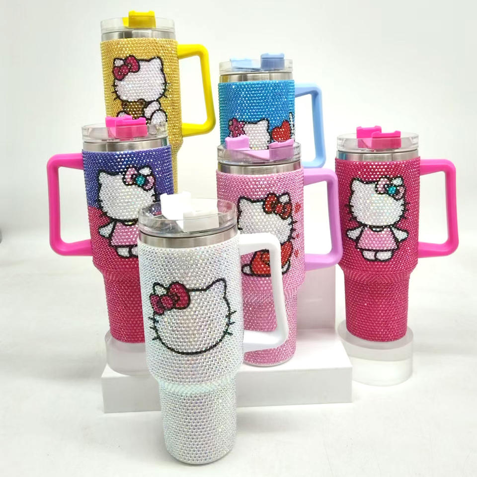 Nouvel Arrivage Gobelet Isotherme Personnalisé en Acier Inoxydable avec Strass et Paille, 40oz, Effet Cristal, pour Fêtes et Café
