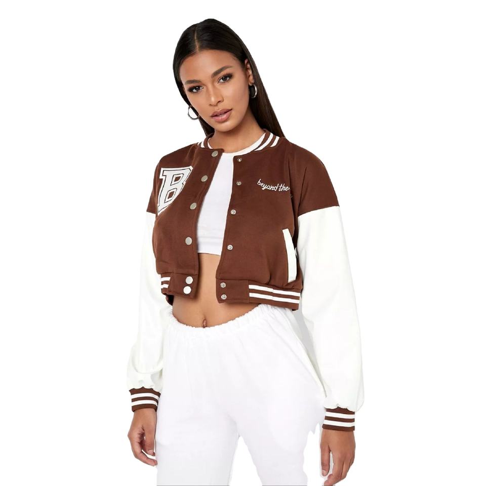Nouvel arrivage de vestes en laine personnalisées, manches en cuir, veste Letterman Varsity Crop Top, vestes brodées pour femmes
