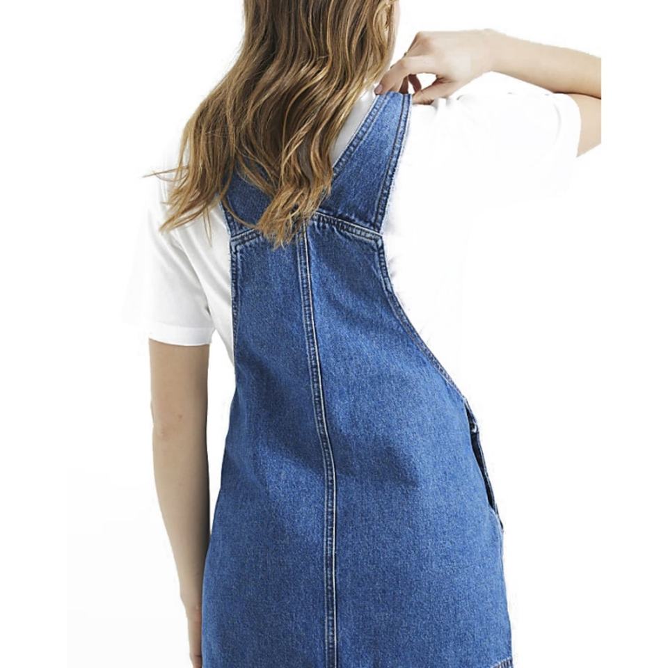 Nouvelle arrivée, robe en jean bleu classique avec logo personnalisé, poche avant, bretelles réglables, mini robe en jean