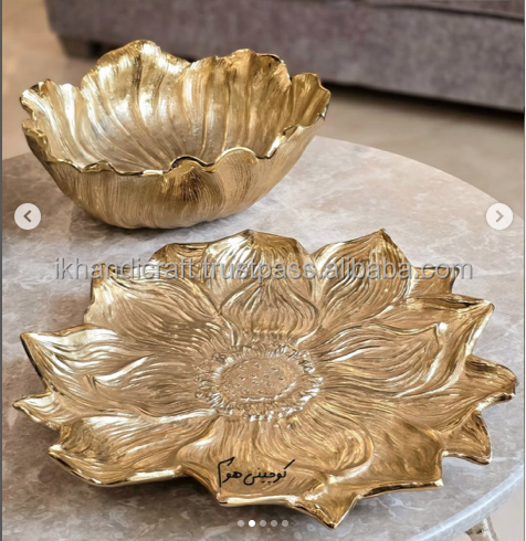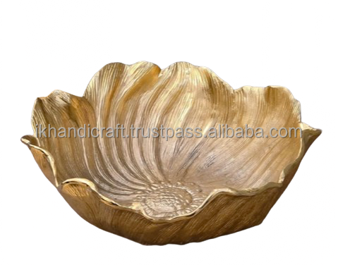 Nouvelle Arrivée Personnalisé Grand Bol En Aluminium Coulé Feuille D'or Fleur Conception Prix De Gros Meilleur Vendeur En Ligne Métal Artisanat