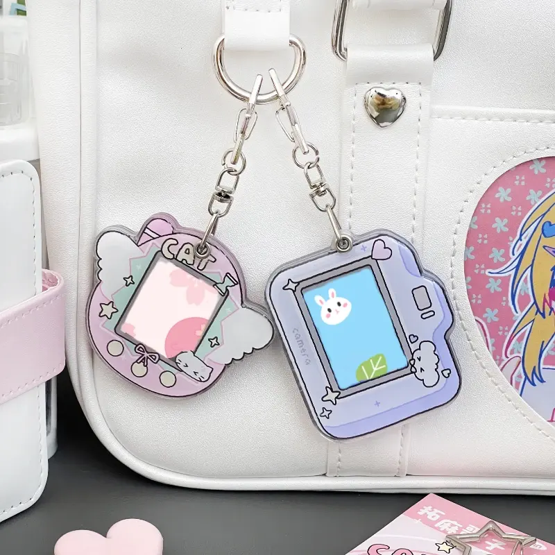 Nouvelle arrivée personnaliser Tamagotchi Photo carte mode femmes sac pendentif personnalisé mignon porte-clés acrylique personnalisé