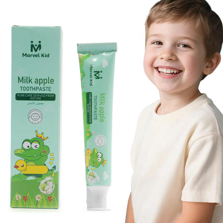 Nouvel Arrivage Etiquette Logo Personnalisé Lait de Pomme Biologique Xylitol Comestible Dentifrice pour Enfants Dentifrice pour Enfants