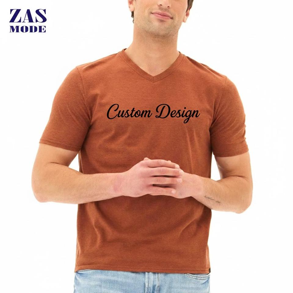 Nouveauté T-shirt décontracté sport pour homme, col en V, coupe ajustée, logo personnalisé, écologique, séchage rapide, 100% coton, couleur unie basique