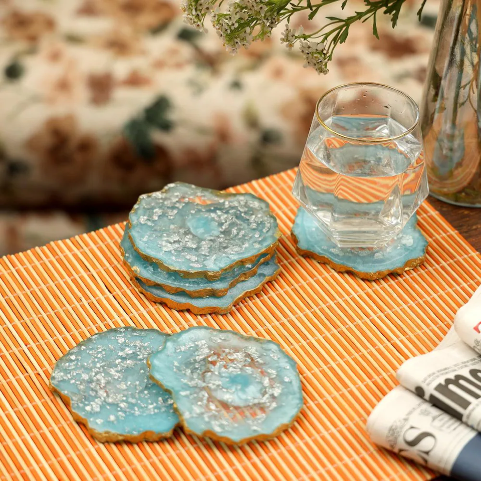 Nouveauté : Sous-verre en résine personnalisé avec texture et tapis de tasse, style campagnard, écologique, réutilisable, décoration