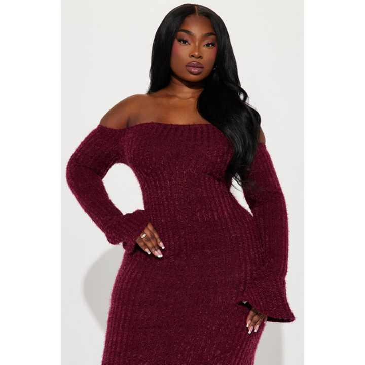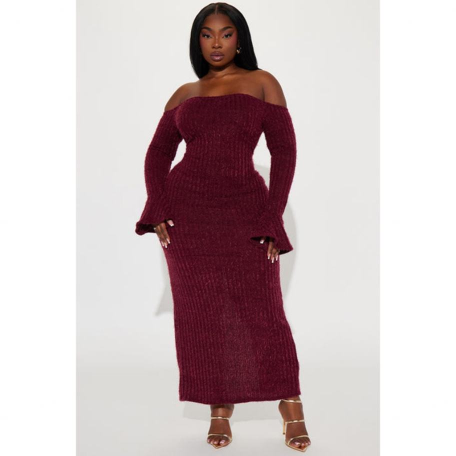 Nouvelle arrivée, style personnalisé, pull à manches longues, épaules dénudées, robe décontractée pour femmes, chaude pour l'hiver
