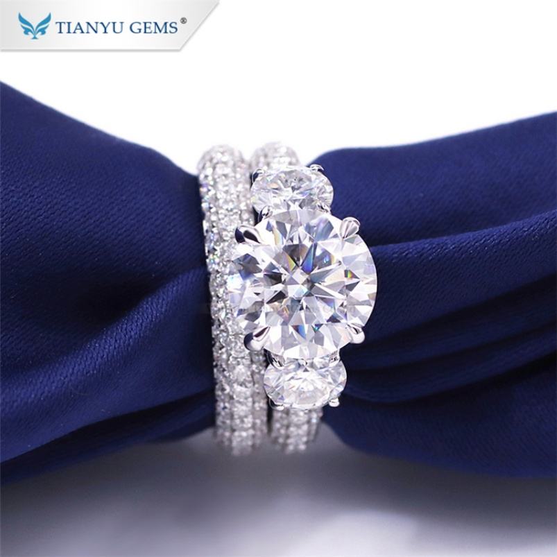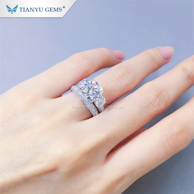 New Arrival Customized THREE Stone Moissanite White Gold Ring for Wedding Bands Engagement Ring One Set