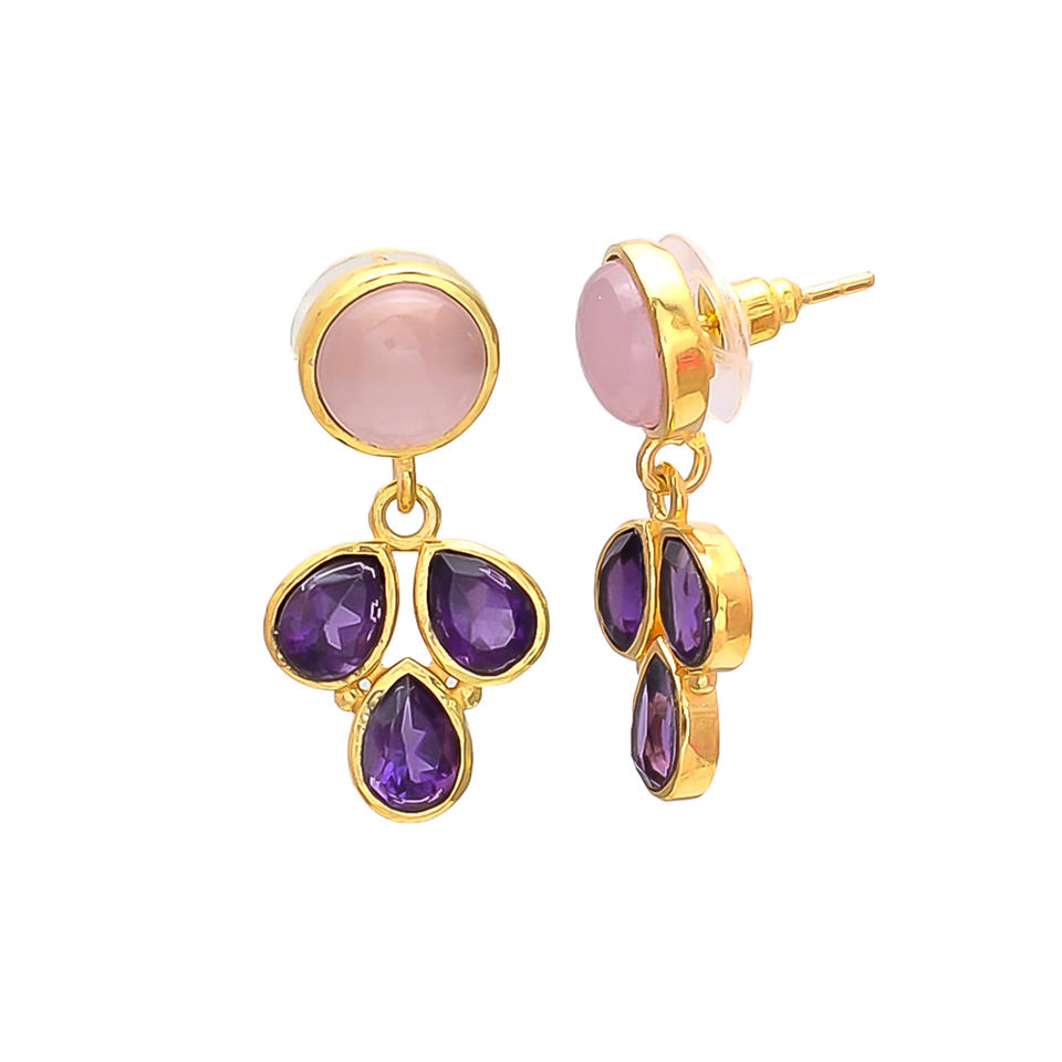 New Arrival Dazzling Golden Earrings with Amethyst and Pink Stones: a Glamorous Statement of Elegances by Gemstone