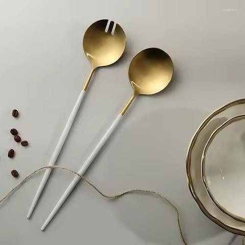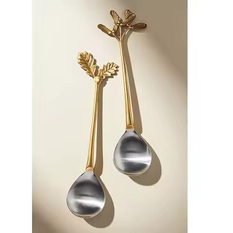 Nouvelle arrivée feuille décorative branche poignée en laiton salade serveur à la main salade cuillère couverts maison cuisine Restaurant utilisation