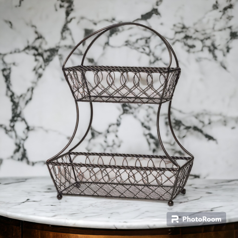 Paniers en métal en fer faits à la main de style moderne nouveauté conception de fil multicolore pour fruits légumes forme de cercle pour le stockage des aliments