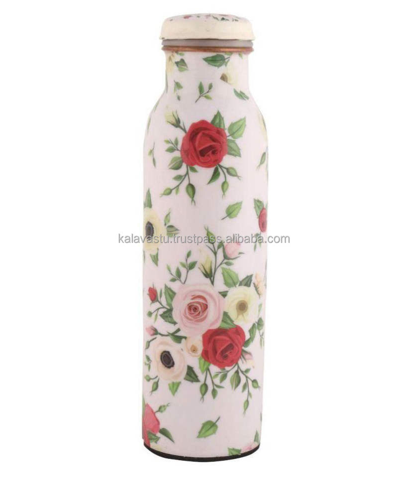 Nouvelle conception bouteille d'eau en cuivre pur en couleur imprimée bouteille d'eau de réfrigérateur faite à la main