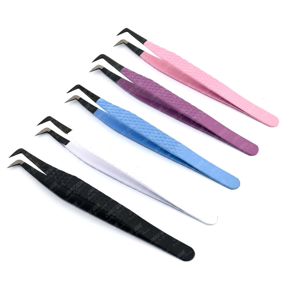 Nouvelle arrivée Diamond Grip Fiber Tip Lash Tweezer 90 degrés