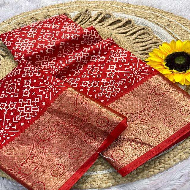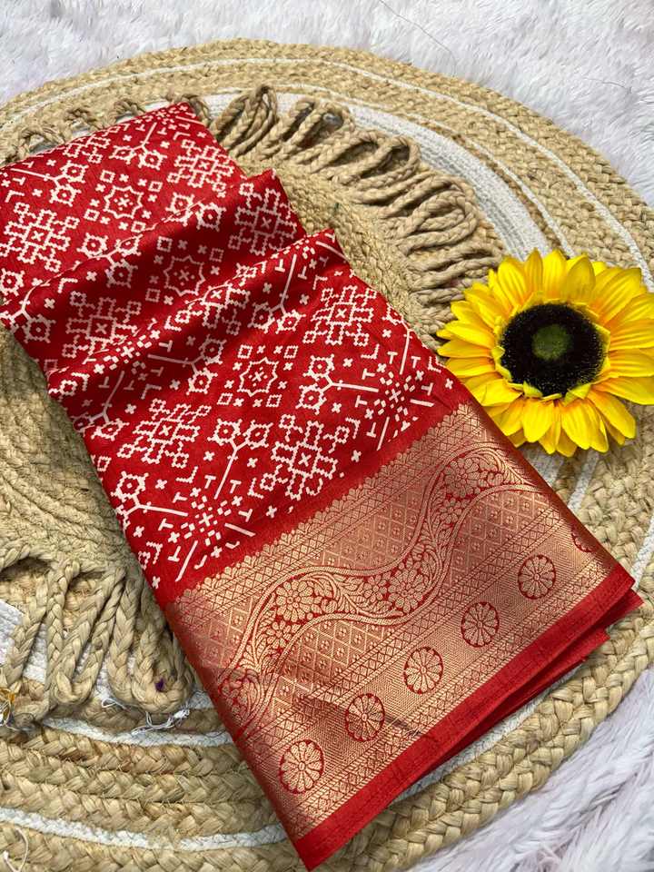 Nouvel arrivage d'habillage Fancy Trending Beautiful Ethnic Clothing Dola Silk Saree Blouse avec impression et tissage à carreaux Work For Sale