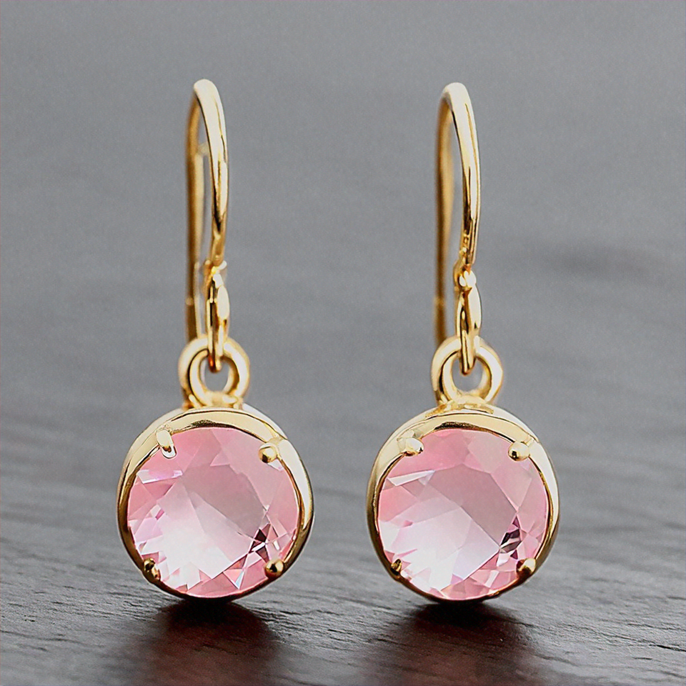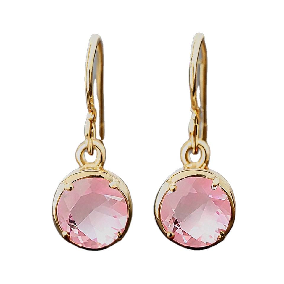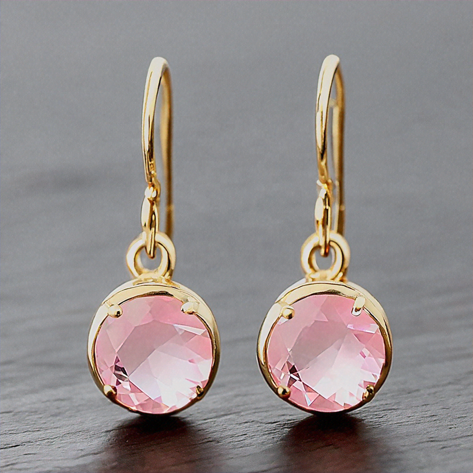 Nouvelles boucles d'oreilles avec pierres de rose rose et argent sterling 925 plaqué or 18 carats pour femmes