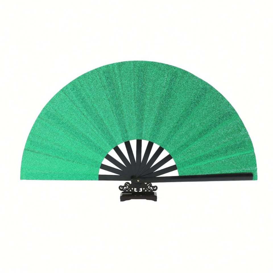Nouvel Arrivage Éventail Portable Écologique en Bambou et Plastique de 33 cm (13 Pouces) Vert Pailleté, Sculpté, Peint, DIY, Thème Musical et Cartoon
