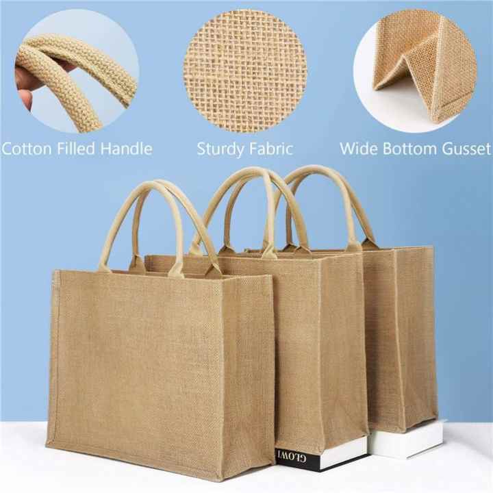 Nouveauté Sac fourre-tout réutilisable en jute et en lin écologique et recyclable Logo personnalisé imprimé et sac de shopping naturel