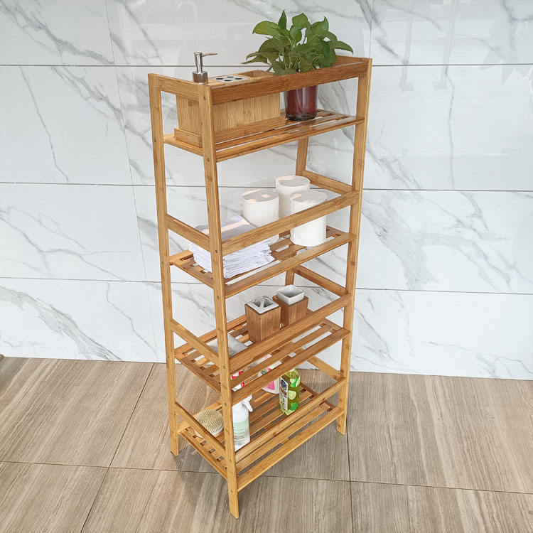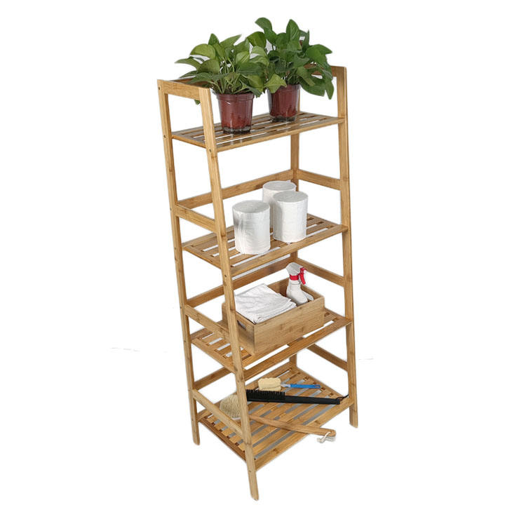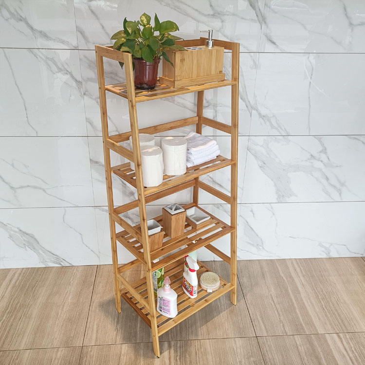 Etagere De Rangement, échelle De bain, étagère De douche, support De salle De bain multifonctionnel en bambou à 4 niveaux pour toilettes, nouvelle collection