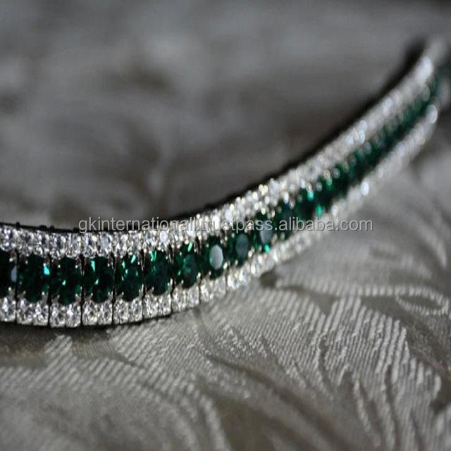 Nouvelle arrivée qualité d'exportation faite à la main personnalisé 3 rangées de cristaux vert foncé et clairs noir anglais cuir cheval sourcil bande